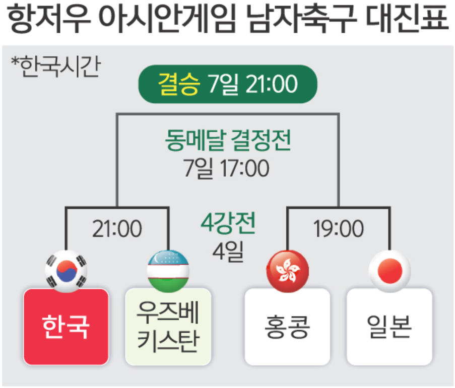 한편, 한국의 경기가 시작 되기 전, 우리 시간으로 오늘 저녁 7시엔 홍콩과 일본이 4강전을 치르고, 오늘 승리한 팀끼리 오는 7일 결승전을 치르게 된다고 합니다. 개인적인 생각으로는 이번 아시안게임 남자축구 결승전은 한·일전으로 봐야하지 않을까 하는 생각을 하면서 오늘 준결승 전 축구 리뷰를 마치겠습니다.