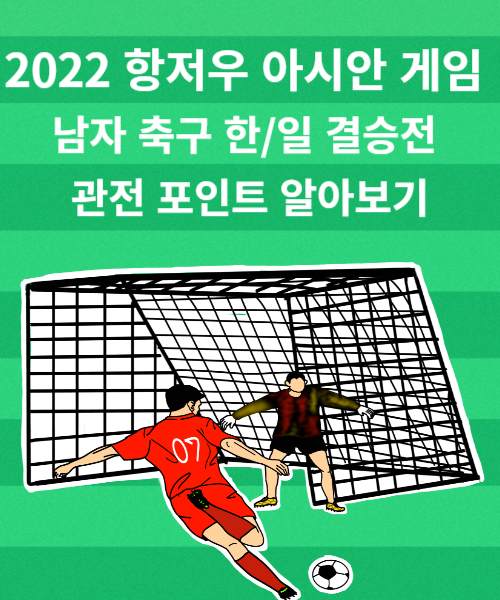 이제 2022 항저우 아시안게임도 막바지를 향해 달려가고 있습니다. 아쉽지만 매 순간 경기가 치뤄질때마다 최선을 다하는 선수들에게 박수를 보냅니다. 그리고 우리가 그토록 기다리던 항저우 아시안 게임 남자 축구 한/일 금메달 결정전이 10월 7일 토요일 저녁 9시 경기를 앞두고 있습니다. 오늘은 2022 항저우 아시안게임 남자 축구 한/일 결승전의 관전 포인트에 대해 알아보겠습니다.