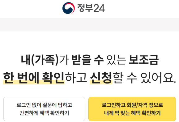 또는 정부24에서 보조금24를 통해 내가 받을 수 있는 지원금을 확인 하실 수 있습니다.