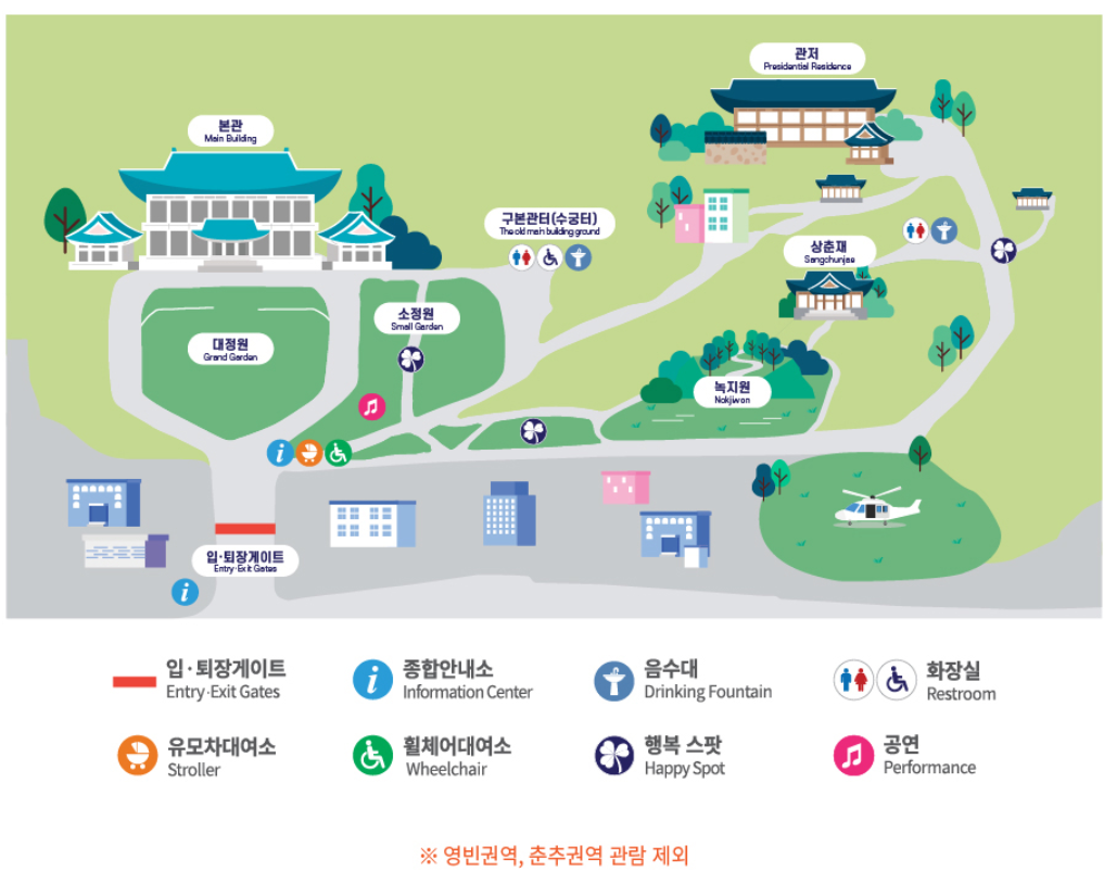 - 행사 장소 : 청와대 일원(영빈관, 춘추관 관람 제외)
