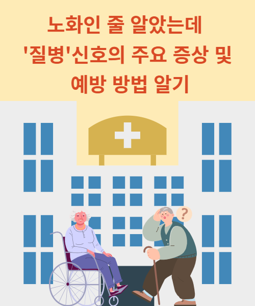 나이가 들면 전반적인 신체 기능들이 떨어지기 마련입니다. 그러나 이로 인해 나타난 신체 이상증세를 단순히 평범한 노화 증세라고 대수롭지 않게 여길 수 있습니다. 하지만 잘못하면 몸이 알려주는 질병의 신호들을 놓칠 수 있으니 오늘은 노화와 헷갈릴 수 있는 질병의 신호인 주요 증상및 예방 방법에 대해 알아보겠습니다.