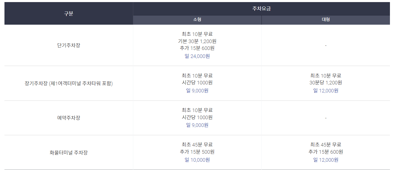 ** 성수기 차량 일시 집중 시, 불가피하게 임시주차장 및 화물청사주차장에 보관할 수 있습니다.