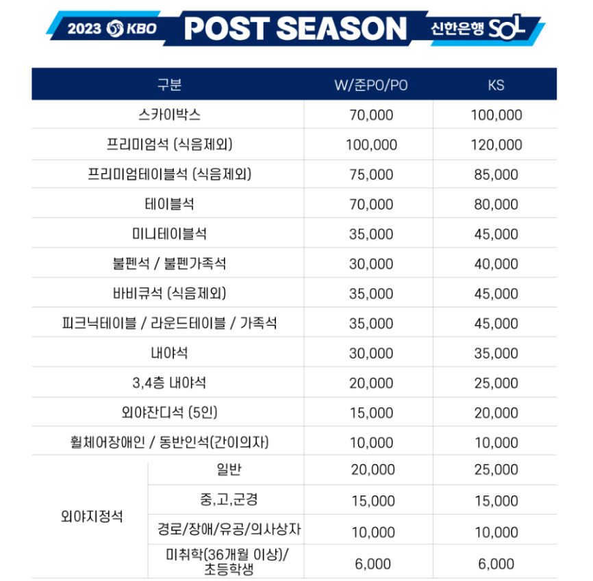 ▶ 2023 포스트 시즌 티켓 가격 ◀
