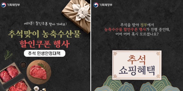 안녕하세요 기획재정부입니다 추석맞이 농축수산물 할인쿠폰 행사를 알려드립니다 할인쿠폰 받아가세요~! ...